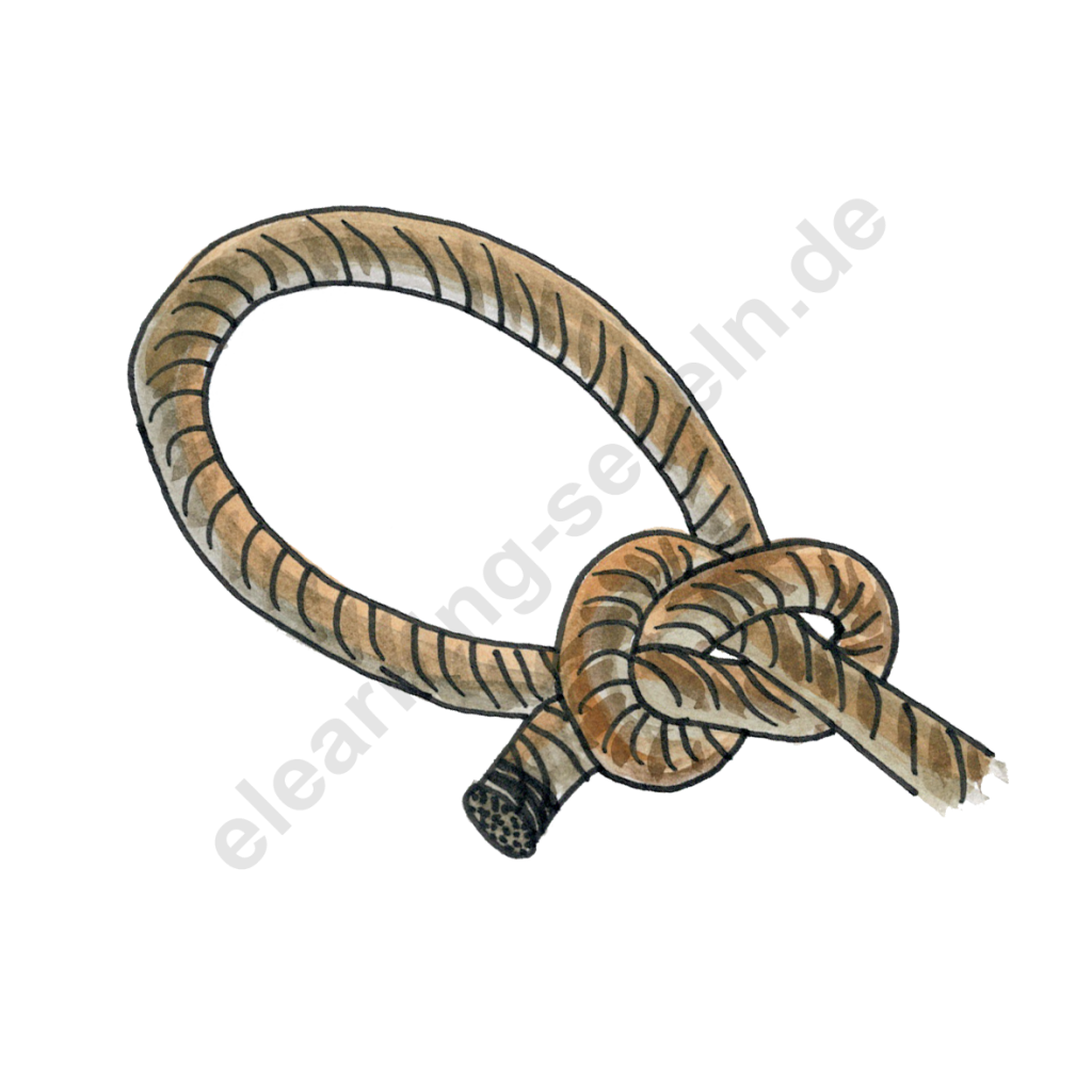 "Bildet ein beliebig großes Auge, das sich nicht zuzieht. Zum Festmachen, Retten und verbinden zweier Leinen.."